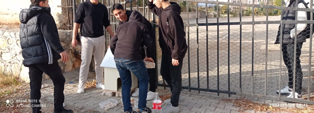 SOSYAL SORUMLULUK PROJESİ KAPSAMINDA OKULUMUZ ÖĞRENCİLERİ SOKAK KEDİLERİNİN BESLNMESİ İÇİN KEDİ EVİ VE BU KEDİLERİN BESLENMESİ İÇİN OKULUMUZ PANSİYONUN MUTFAĞINDA ATIK OLAN YİYECEKLERİ KULLANARAK HER GÜN SOKAK HAYVANLARINI BESLEYEREK DUYARLILIĞIN OLUŞMASINA KATKI SAĞLADILAR